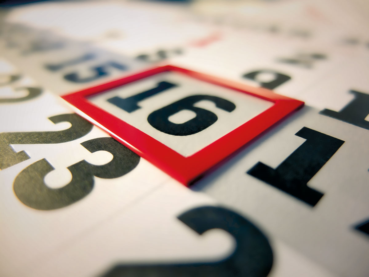 Depending on which datepad you choose, this wall calendar is available in up to four different base colours, without extra costs. The date marker - the little red frame on the transparent weekmaster© which marks the current date, is completely mounted and of course included in the price too. The 4-month dispo Quadro calendars are produced exclusively with FSC® materials and according to certified quality standards (inter alia Process Standard for Offset Printing for the particularly demanding print on cardboard and PSO active) and controlled by regular external audits.